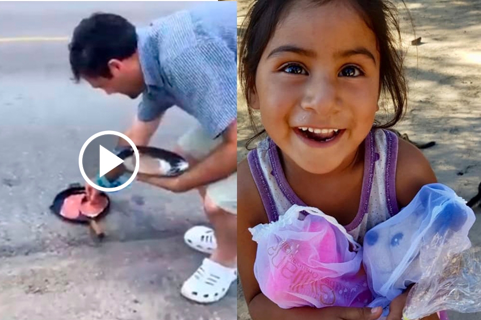 El video publicado por Marcos Tenaglia en su cuenta de Facebook muestra cómo cocina un bife sobre el asfalto, en Santiago del Estero. Pero detrás de la imagen que se viralizó hay una historia solidaria.