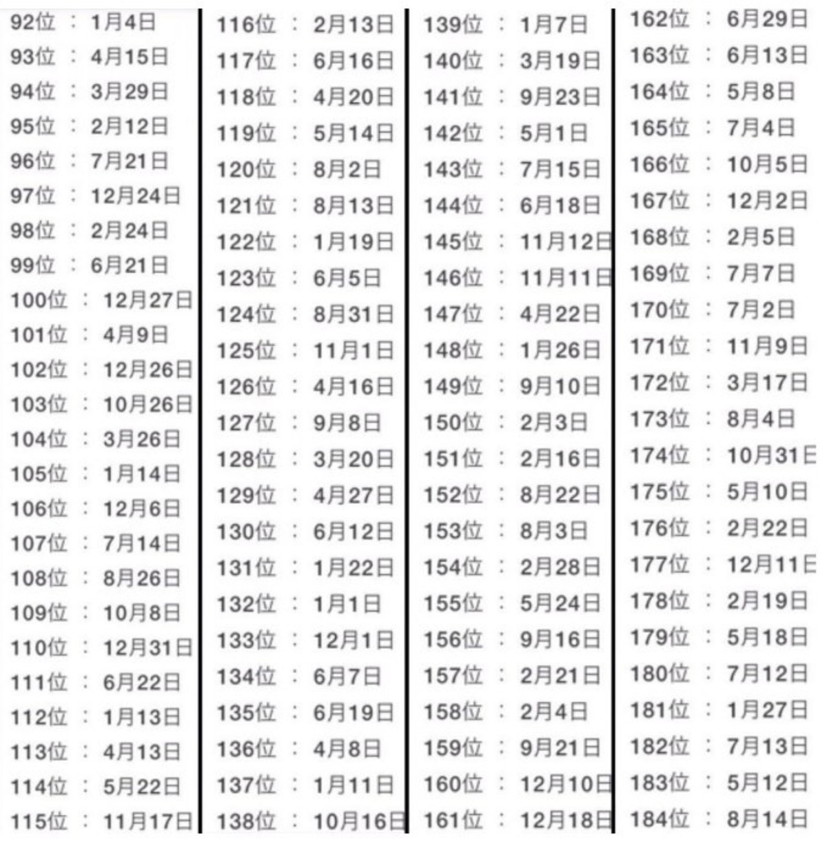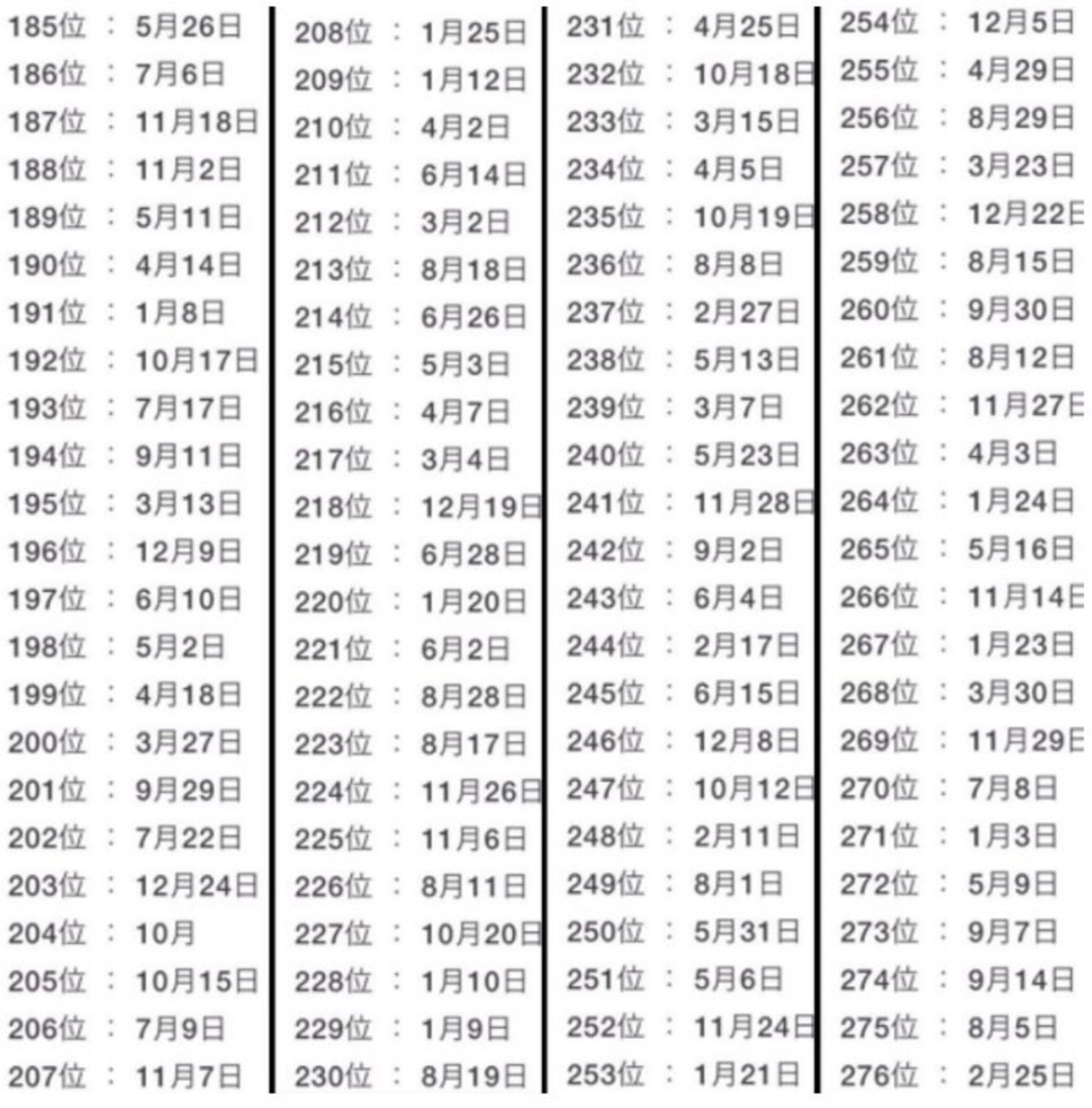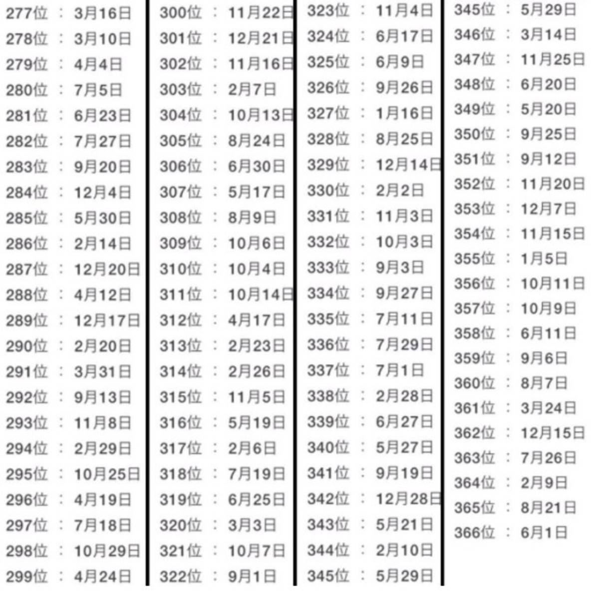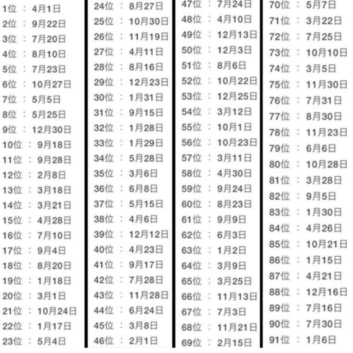 Para pasar en claro, sólo hay que buscar la fecha de nacimiento (mes y día) y fijarse en el puesto en el que está. Si se encuentra cerca del 1, la predicción es que 2019 será un año con mucha suerte.