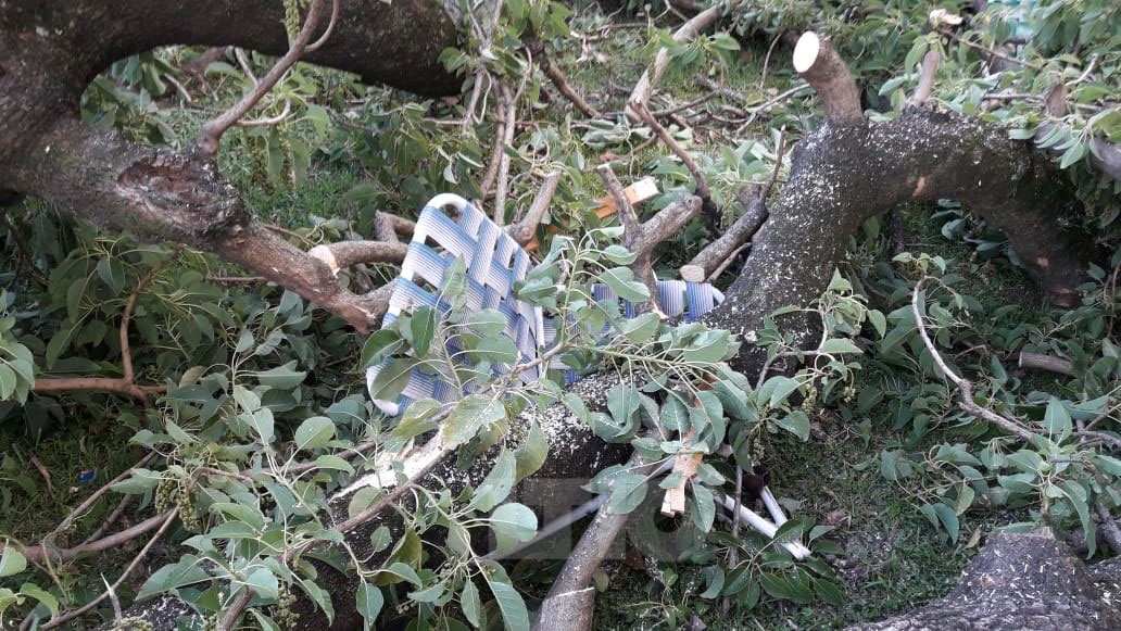 El pesado árbol cayó sobre varias personas que se encontraban sentadas a la sombra en sus reposeras (Foto: LT10)