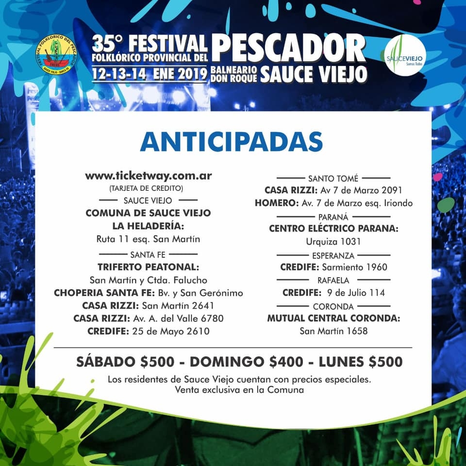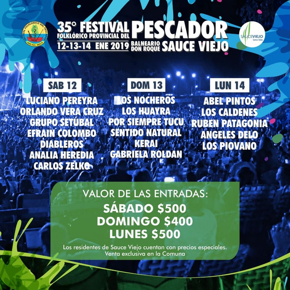 El sábado 12, domingo 13 y lunes 14 de enero se podrá disfrutar de uno de los festivales más popular de la región, también disfrutar del río, la pesca, la gastronomía y tantas actividades que tiene Sauce Viejo. Abel Pintos, Luciano Pereyra y Los Huayra son algunos de los artistas que conforman la grilla de las 3 noches.