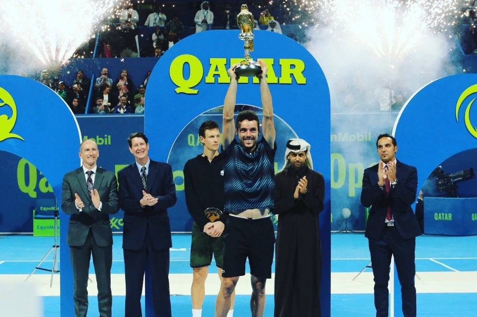 El ATP 250 de Doha, Qatar, se disputó sobre canchas rápidas, con premios por 1.313.215 millones de dólares. El bahiense Guido Pella fue el único argentino en el cuadro principal, aunque no se presentó a jugar en la segunda ronda (justamente ante Cecchinato) por una fuerte lumbalgia.