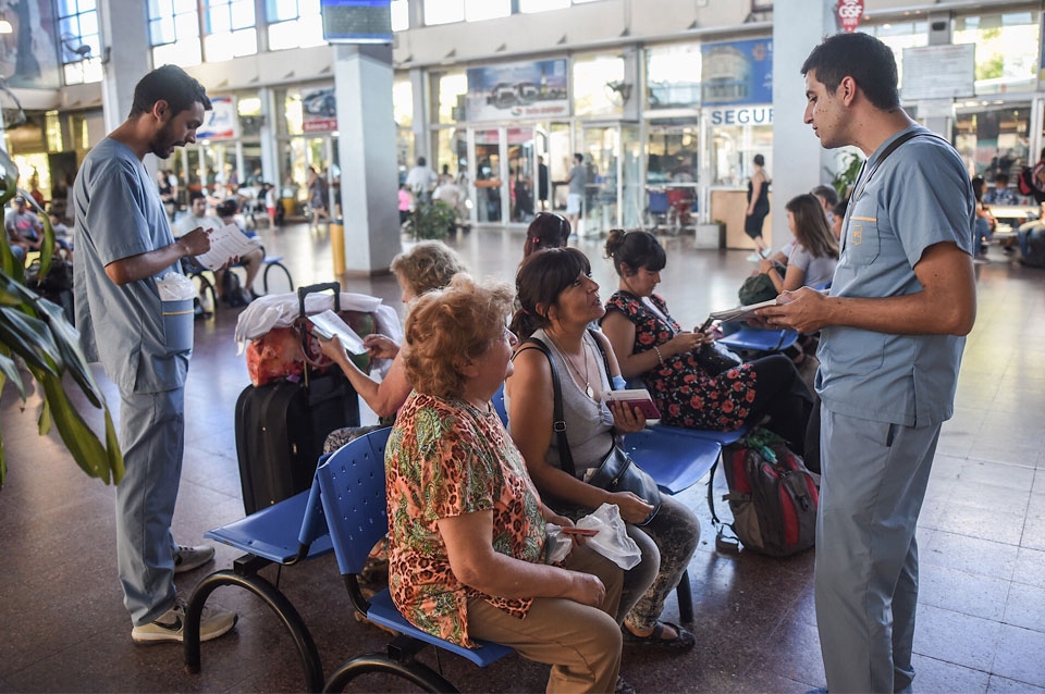 La acción comenzó en diciembre y se extenderá durante todo enero y febrero. El equipo se instala en la Terminal, principalmente, de 17.30 a 19.30, que es cuando más colectivos llegan o parten hacia países como Bolivia, Paraguay y Brasil, fundamentalmente, y a la zona norte de la Argentina, que es donde sí está el mosquito transmisor. Vale aclarar que en Santa Fe no está la enfermedad, pero sí prolifera la especie transmisora y si llega una persona infectada se podría propagar.