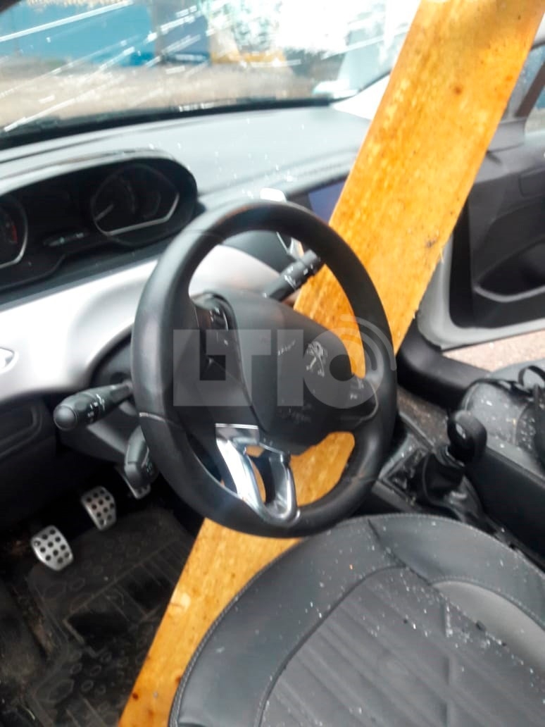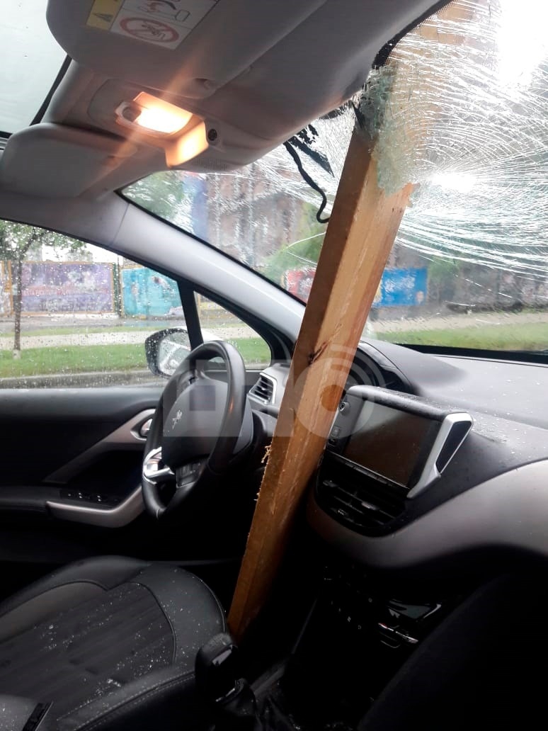 Al conductor, que iba solo en el coche, el poste de madera, de varios metros de largo, le rozó la pierna derecha produciéndole moretones al caerle a escasos 4 centímetros de distancia.
