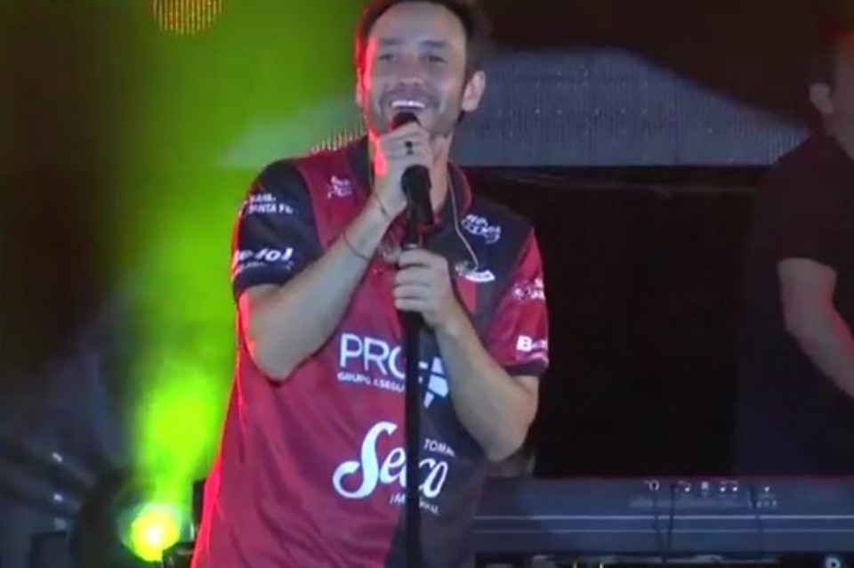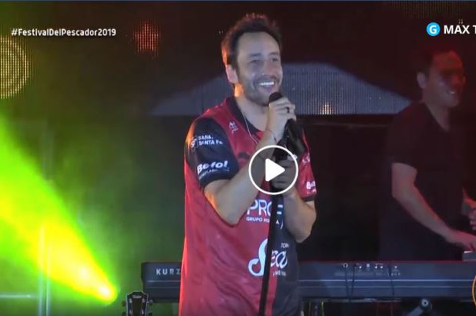 En la primera noche del tradicional Festival del Pescador que se realiza en Sauce Viejo, Luciano Pereyra, quien es el padrino del mismo, luciendo con alegría la camiseta roja y negra al ritmo de su música 🔴⚫👏