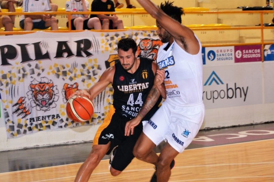 En el primer cuarto, se alternaron en el liderazgo con diferencias exiguas. Los hermanos Alonso que integraron la formación titular terminarían redondeando 12 unidades, cerrando Libertad los primeros 10' arriba por la mínima diferencia. En el pasaje inicial del segundo período, pareció que el Fantasma le encontraba la vuelta al juego con el aporte de Giordano y Henriquez (11 entre los dos) para alejarse a 8 de máxima en casi 6'. Pero despertó de la sequía Libertad y el tridente Cuello, Copello y Caffaro impusieron un parcial 13-3 en el tiempo restante para retirarse al descanso largo por un doble arriba (40-38).
