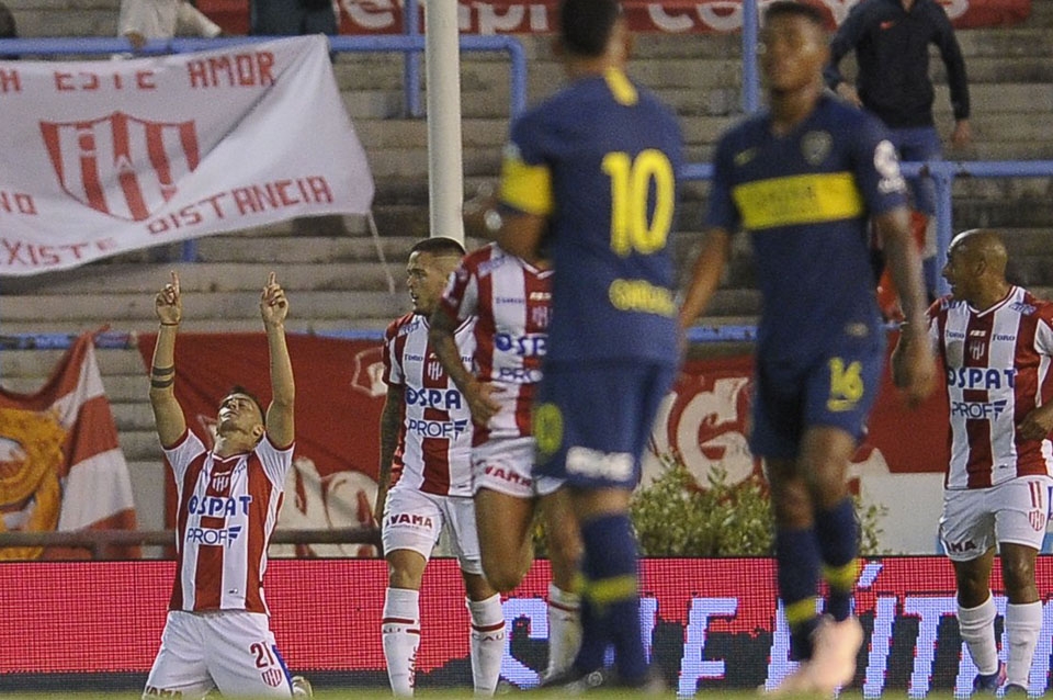 Unión estuvo bien parado y en su primer avance serio tomó desarticulado a Boca y encontró la ventaja. Iban 18, cuando el uruguayo Zabala abrió a la derecha para la proyección de Martínez, quien envió un preciso centro para que aparezca el ingresado Lotti y con un cabezazo, entre los dos centrales y frente a un dubitativo Andrada, anotó el 1-0.