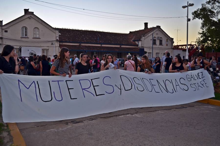 Agrupaciones feministas de la zona confluyeron junto con vecinos en el playón del ferrocarril (Foto: Gálvez Hoy)