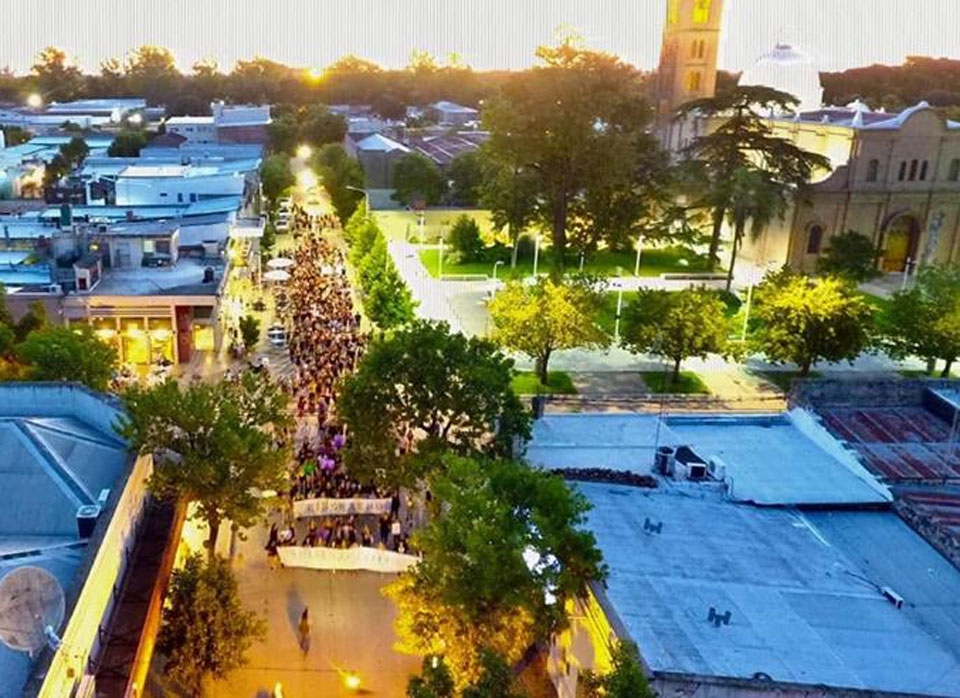 Tras la lectura del escrito, la columna humana partió con velas en las manos a recorrer las calles: de Lisandro de la Torre hasta Rivadavia, desde allí a Mitre para doblar hasta Belgrano, retornando nuevamente al playón.