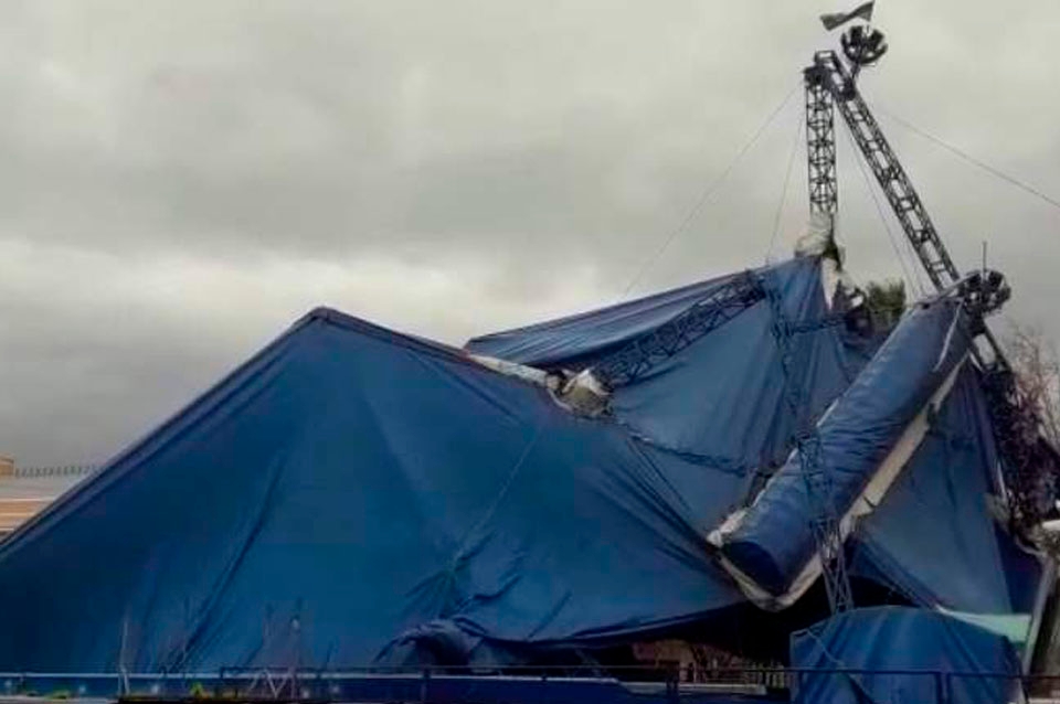 Es que el viento Sur, cuyas ráfagas ya alcanzaban los 68 km/h, abrieron la gigantesca carpa al medio y le arrancaron la mitad de la pesada lona como si fuera de papel. Lo que siguió fue un caos y desesperación para escapar de allí ante el terror de morir aplastados por la estructura.