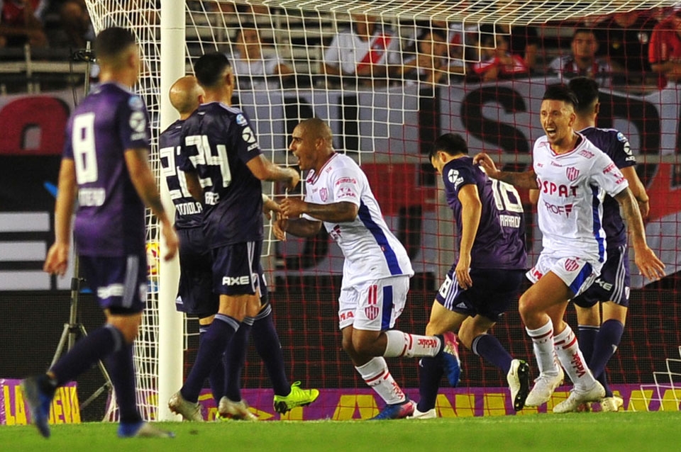 Unión profundizó el mal momento de River. Le ganó con superioridad por 2 a 1 en el estadio Monumental, por el partido postergado de la duodécima fecha de la Superliga. Los goles los marcaron Fragapane, Zabala y Botinelli (en contra). Muy buena victoria para el rojiblanco ya que se pone a un punto de la zona de copas y además tuvo un buen rendimiento colectivo.