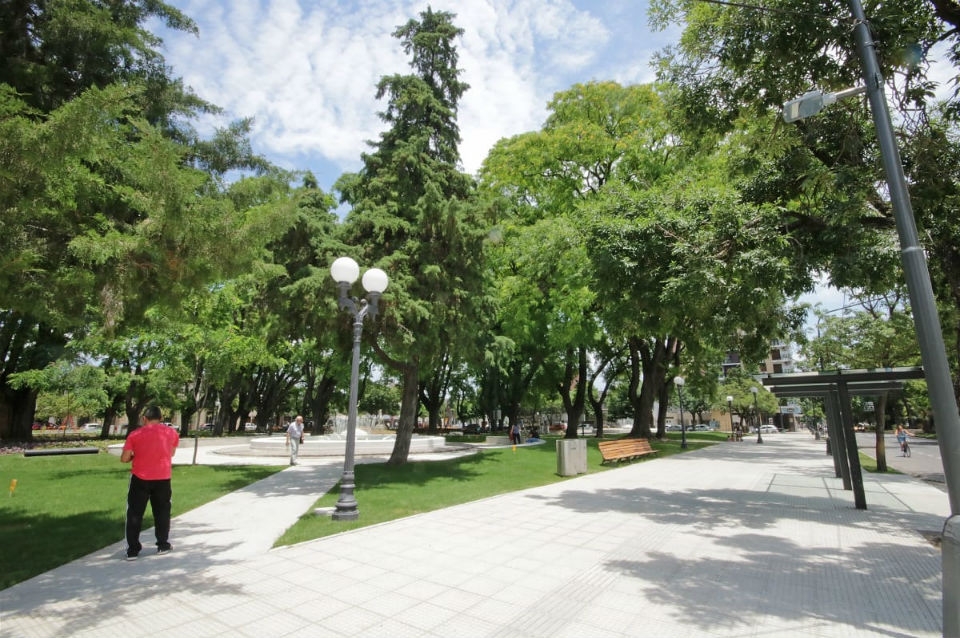 Por otra parte, se amplió la vereda sobre Bulevar para mejorar las condiciones de circulación. La renovación integral incluyó también la colocación de bancos de dos tipos, de madera con respaldo y de hormigón con tapa granítica en la zona de fuentes y juegos.