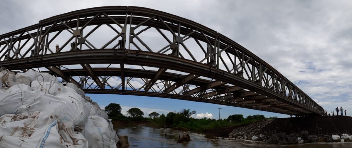 La instalación del puente Mabey -cuya longitud y estructura es aún mayor que el tradicional Bailey- fue realizada por el Ejército Argentino, que durante varios días debió realizar las tareas pertinentes en el sector de la ruta que se rompió debido a la masa de agua proveniente de campos inundados por las intensas lluvias.