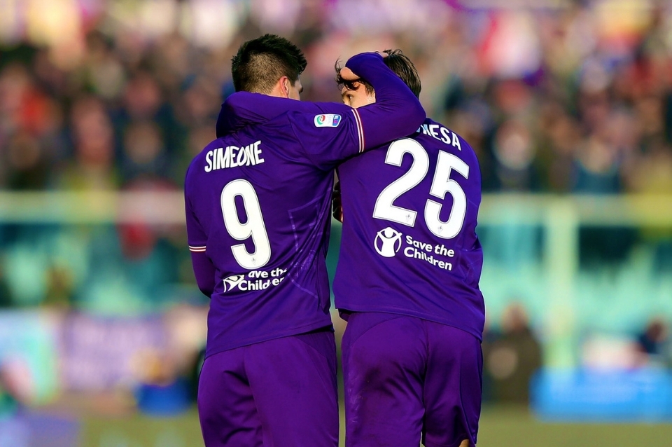 El delantero argentino Giovanni Simeone anotó este miércoles dos veces en la goleada de su equipo, Fiorentina, sobre Roma, por 7-1 como local, en el partido correspondiente a los cuartos de final de la Copa Italia.