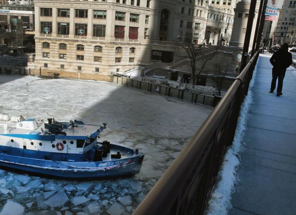 Bloques de hielo flotaban en el río de la ciudad, al tiempo que las llamas de los quemadores de gas calentaban las lineas ferroviarias regionales para mantenerlas en funcionamiento. Más de 1.800 vuelos fueron cancelados en los dos grandes aeropuertos de la ciudad y el operador ferroviario Amtrak interrumpió su servicio.