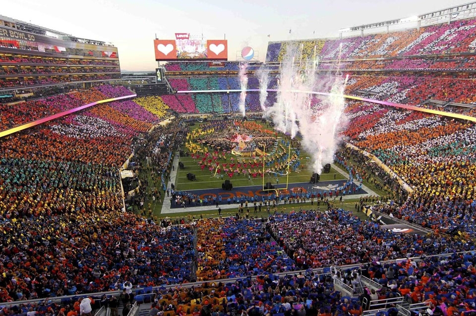 Sin embargo la atención también estará puesta en el tradicional show de medio tiempo, luego del segundo cuarto, que revoluciona el campo de juego. Y es literal: se produce un montaje en el campo que se convierte en un escenario acondicionado para un evento musical. Miles de marcas aprovechan el evento y gastan millones de dólares por algunos segundos de publicidad.