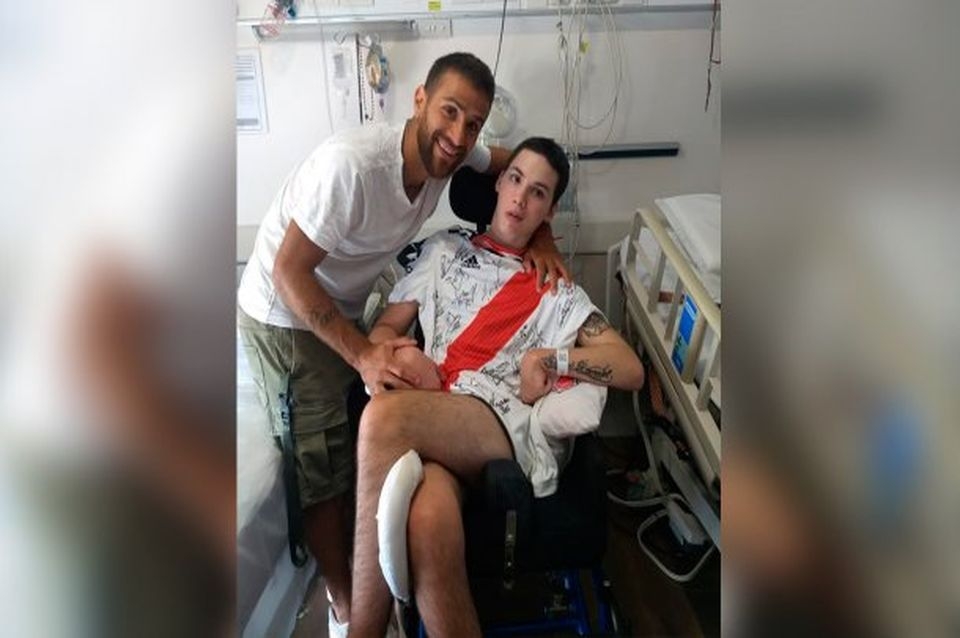 Alan Guevara volvió a recibir la visita de Leo Ponzio, que le llevó una nueva camiseta firmada por el plantel de River después de que le robaran la suya en la clínica donde está internado.