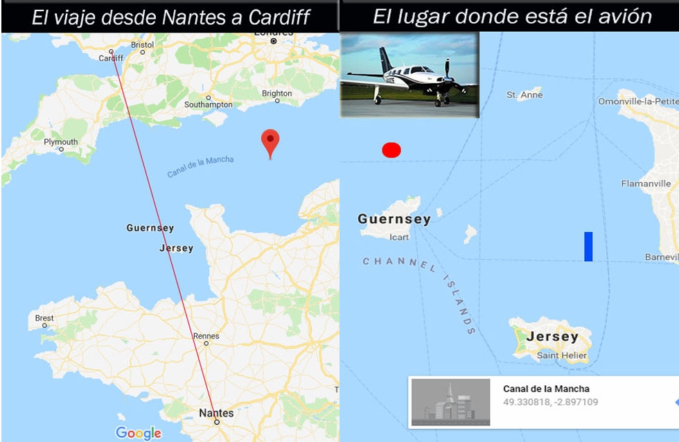 La pequeña avioneta privada de pasajeros Piper PA-46 Malibu en la que viajaba el goleador argentino Emiliano Sala desapareció el pasado 21 de enero cuando volaba sobre el Canal de la Mancha. Despegó del aeropuerto de Nantes-Atlantique rumbo a Cardiff, pero nunca llegó. Al pasar por Guernsey la aeronave solicitó el descenso, pero la torre de control perdió contacto cuando estaban a 2.300 pies de altura.