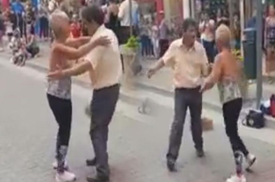 Hace algunos días comenzó a verse en redes sociales imágenes de un hombre y una mujer “tirando unos pasos”, como artistas callejeros en la peatonal. Una persona decidió filmarlos y lo compartió en las redes.