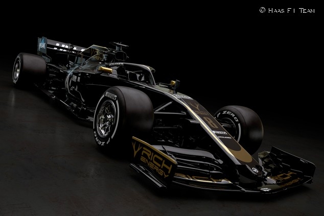El nuevo VF-19 ha salido hoy a luz. Haas ha optado por el negro y el dorado como los colores predominantes en la decoración del VF-19, como se ha podido ver en la presentación del diseño, celebrada en el Royal Automobile Club de Londres.