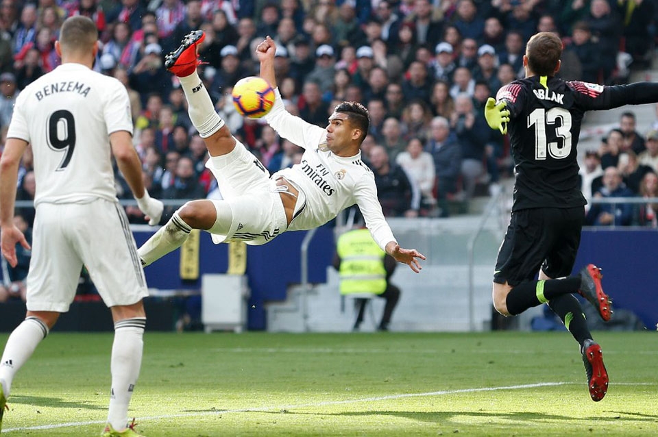 Casemiro abrió el marcador a los 16 minutos de juego con una tijera, luego de que Sergio Ramos ganara en las alturas ante cuatro marcadores.