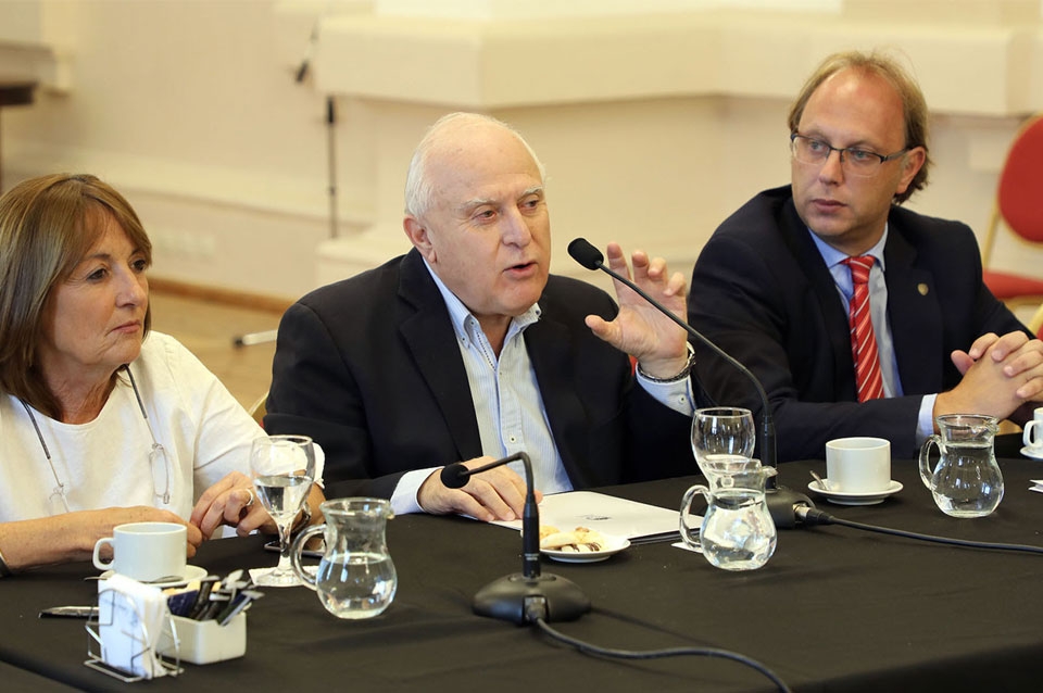También estuvieron en la presentación, el ministro de Gobierno y Reforma del Estado, Pablo Farías; los diputados provinciales Clara García, Jorge Henn, Julio Garibaldi y Joaquín Blanco; el concejal santafesino Emilio Jatón; el secretario de Gobierno, Mariano Cuvertino; y el asesor del Gabinete, Juan Carlos Zabalza. Además, fueron invitados los representantes de las siguientes instituciones: Confederación de Asociaciones Rurales de la Provincia de Santa Fe, Federación Industrial de Santa Fe, Federación de Centros Comerciales de la Provincia de Santa Fe, Federación Agraria Argentina, Cámara Argentina de la Construcción, Confederación Intercoperativa Agropecuaria Limitada, Asociación de Pequeñas y Medianas Industrias Lácteas de Santa Fe, Centro de la Industria Lechera, Unión Industrial de Santa Fe, Centro Comercial e Industrial de Rafaela, Centro Industrial de Las Parejas, Asociación de Industriales Metalúrgicos, Cámara Regional de Industria y Comercio Exterior, Asociación Civil de Entidades Empresarias del Sur Santafesino, Asociación Empresaria de Rosario, Centro Comercial de la Ciudad de Santa Fe, APyME Santa Fe, APyME Rosario, Cámara de Comercio Exterior del Norte Santafesino, Cámara de Frigoríficos de Santa Fe, Cámara Avícola, Cámara de la Madera, Centro de la Industria, Comercio y Afines de Esperanza, Polo Tecnológico de Santa Fe, Polo Tecnológico de Rosario, Asociación de Comercio e Industria de Villa Gobernador Gálvez, Cámara Argentina de Fabricantes de Maquinara Agrícola.