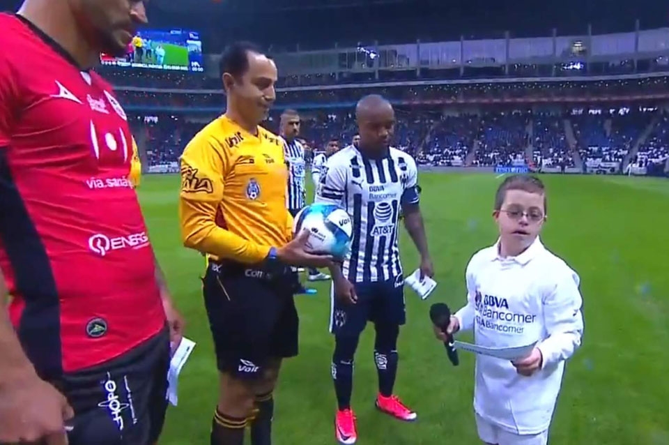 👏 👏 👏 #RayadosxFOX El gran gesto del árbitro con un pequeño en la ceremonia del @Rayados vs. Lobos BUAP