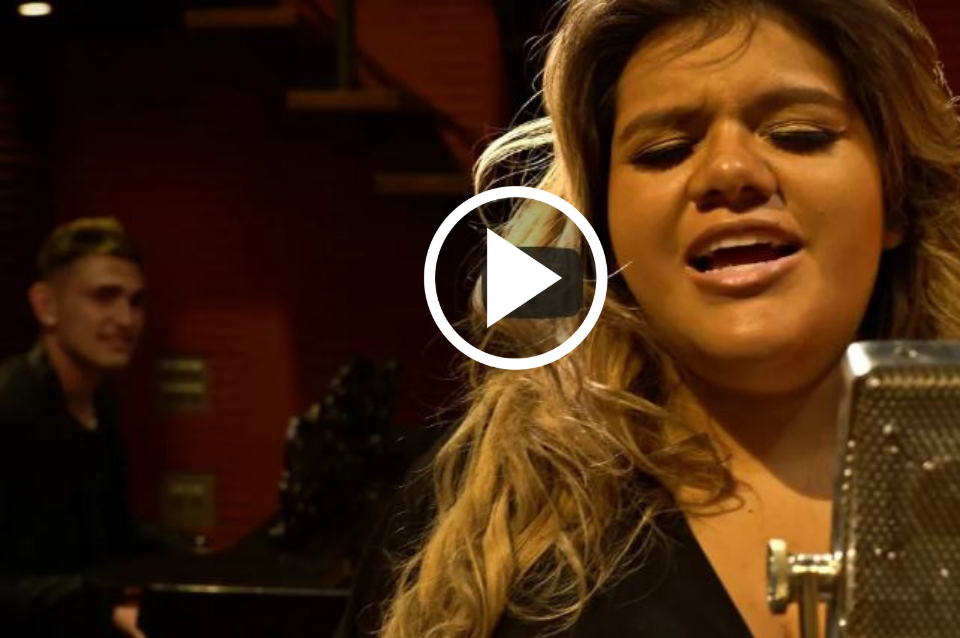 En la filmación de cuatro minutos se puede ver a la joven de 20 años en un estudio de grabación con un look elegante, vestido negro, zapatos altos, maquillaje en tonos dorados y su pelo suelto con bucles, frente al micrófono. En un costado aparece su novio tocando el piano.