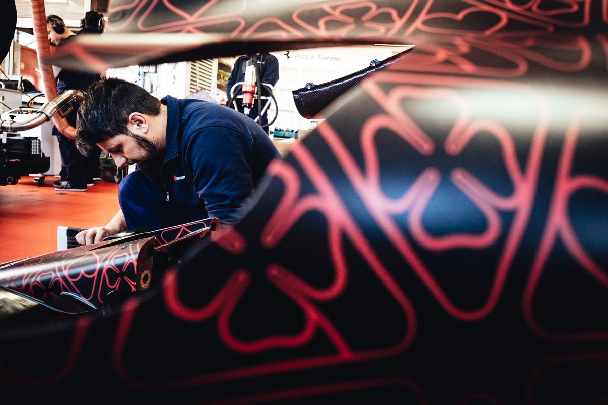 Alfa Romeo está utilizando uno de sus dos eventos promocionales autorizados para rodar su nuevo auto antes de los ensayos de pre temporada en Barcelona de la Fórmula 1 que se pondrán en marcha el lunes 18 de febrero  Kimi Raikkonen es el encargado de dar las primeras vueltas em Fiorano al mando del nuevo Alfa, que apareció con un diseño de camuflaje negro y rojo.