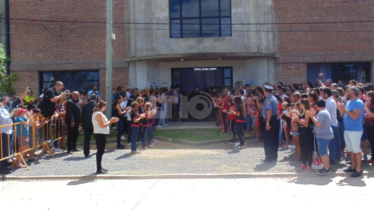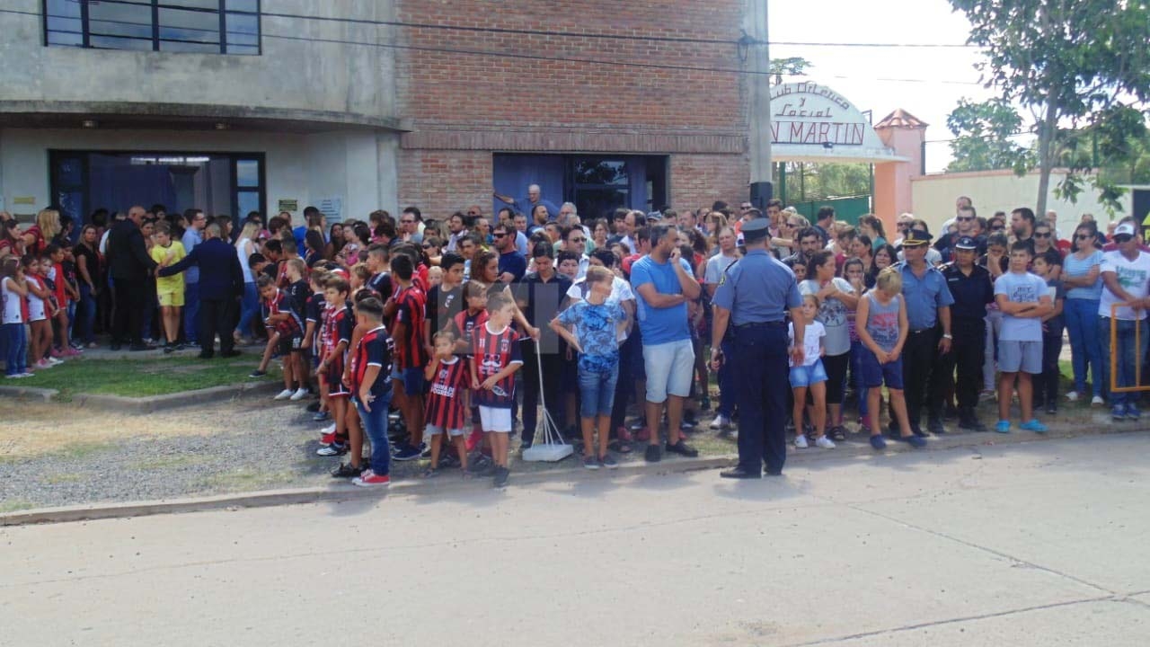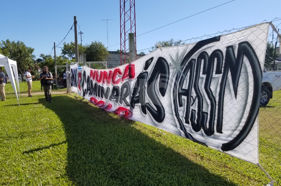 Si bien fuera de las instalaciones del club San Martín de Progreso el movimiento fue constante, las banderas de apoyo enmarcaron la entrada y los trabajadores de prensa trabajaron en un sector delimitado por el vallado en la calle, adentro del salón donde se realizó la ceremonia el clima fue de hondo pesar y tristeza.