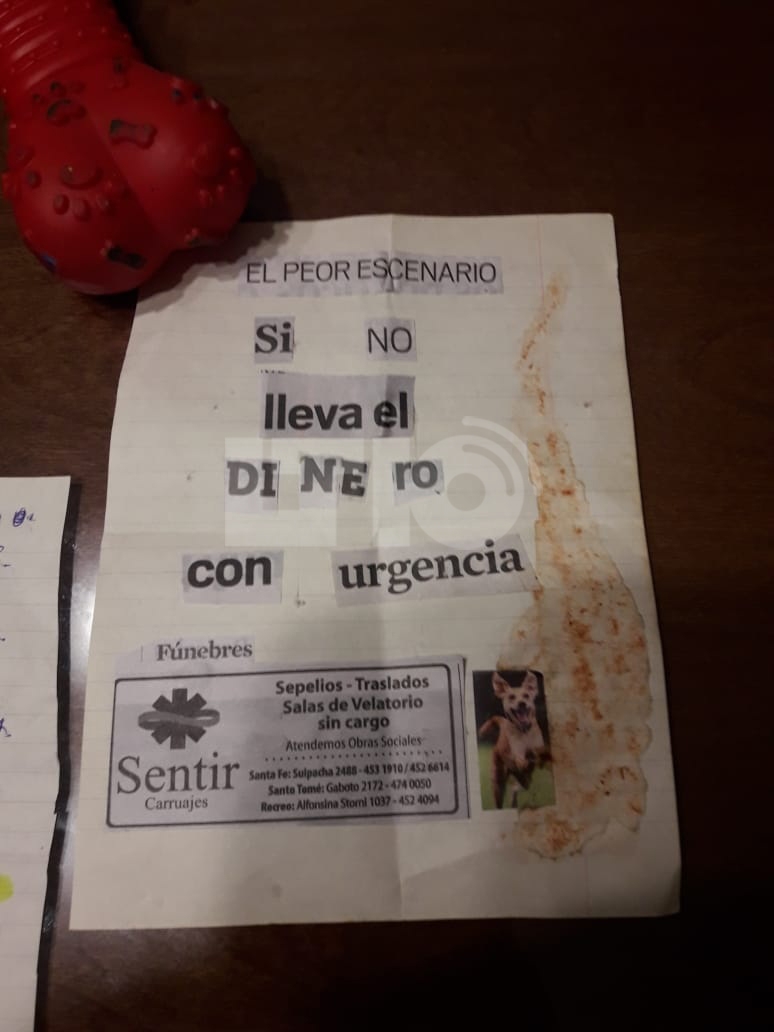El domingo 10 de febrero, una mujer mayor que vive en el barrio Candioti de Santa Fe, fue por la tarde a misa como lo hace regularmente. Cuando regresó al cabo de dos horas, vio que su casa tenía la puerta entreabierta, y si bien no había signos de violencia sobre las cosas, constató la faltante de dinero  en pesos y en moneda extranjera del lugar en el que estaban guardados, de su teléfono celular y de su perro. Sí. También le habían robado su perro. Y para el remate de esta historia, halló sobre la mesa del comedor hojas manuscritas amenazantes en la que le exigían el pago de una abultada suma de dinero para no matar el perro.