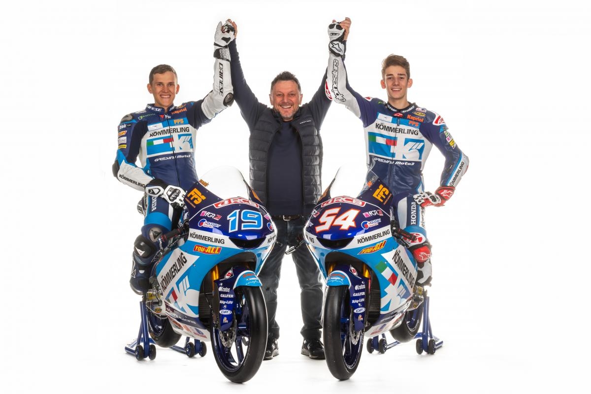 El equipo Kommerling Gresini Moto3™ fue presentado oficialmente este jueves con unas altas aspiraciones tras el éxito cosechado la pasada campaña, en la que Jorge Martín y Fabio Di Giannantonio coparon las dos primeras plazas. Al título del piloto español, Gresini sumó también el del campeonato por equipos. Un listón que ha quedado muy alto.