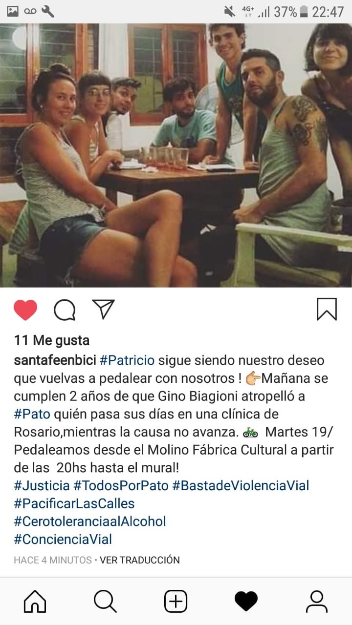 Tras el encontronazo y con Gómez tirado en el asfalto Gino Pietro Biagioni de 18 años se dio a la fuga sin asistir a la víctima. Hoy desde las 20 habrá una pedaleada que saldrá desde Rivadavia y Bulevar hasta la costanera santafesina para recordar a Patricio y pedir que se garantice el avance de la justicia en la causa.
