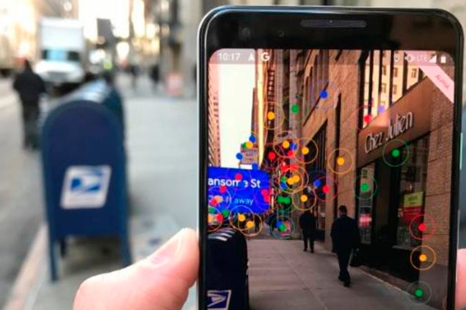 Cuando el usuario necesita decidir un nuevo lugar hacia dónde dirigirse, debe inclinar el dispositivo hacia arriba. Google Maps tratará de analizar rápidamente su ubicación a partir de las imágenes que lo rodean.