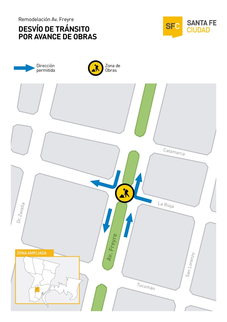 En el marco de la obra de Renovación Integral de la Av. Gdor. Freyre, actualmente en ejecución, el gobierno municipal informa de una intervención vial programada. Será hasta el 2 de marzo.