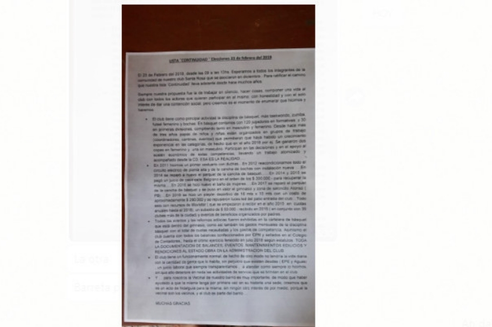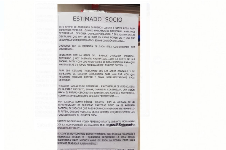 El Club Social y Deportivo Santa Rosa, ubicado en calle Las Heras 4435, convoca a los socios a participar del acto eleccionario para este sábado 23 de febrero, donde quedará definida la Comisión Directiva que regirá los destinos del club por un nuevo período.
