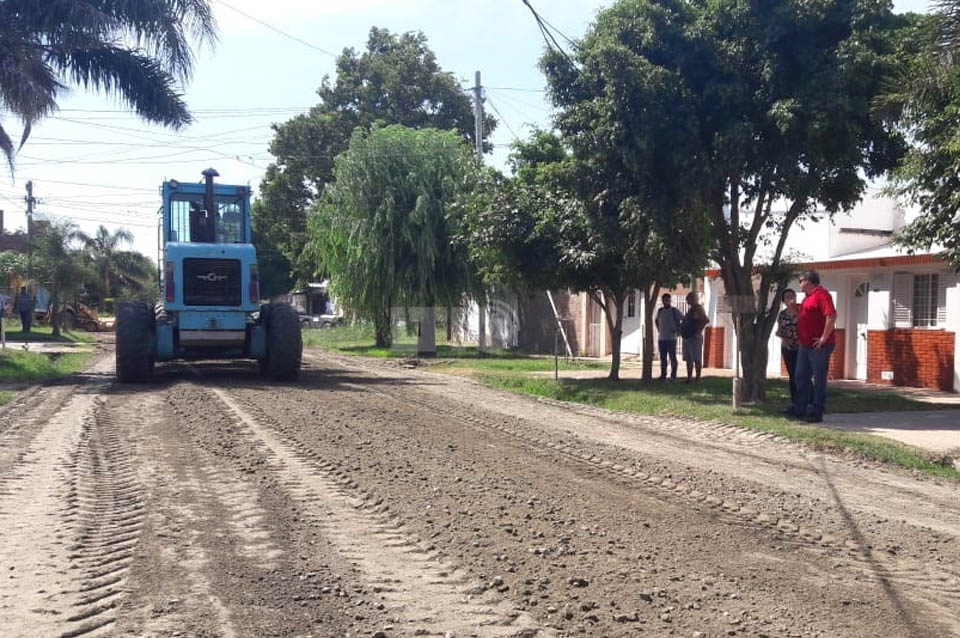 El municipio lleva adelante una intervención a gran escala para el mejorado de calles de tierra. En este momento son nueve frentes en los que se trabaja de manera simultánea, con recursos propios.