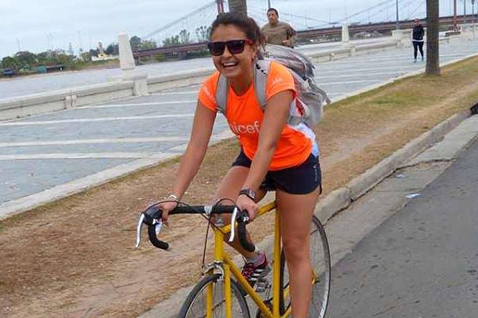La mujer oriunda de Los Corralitos cerca de Alejandra explicó que trabaja como bioquímica en un sanatorio local y explicó que la bicicleta es su medio de transporte y hace un tiempo viene entrenando con la bicicleta para poder llevar adelante su viaje. Además hace seis meses que está trabajando gratis en una bicicleteria para aprender el oficio para solucionar los problemas que se le puede presentar en el camino.