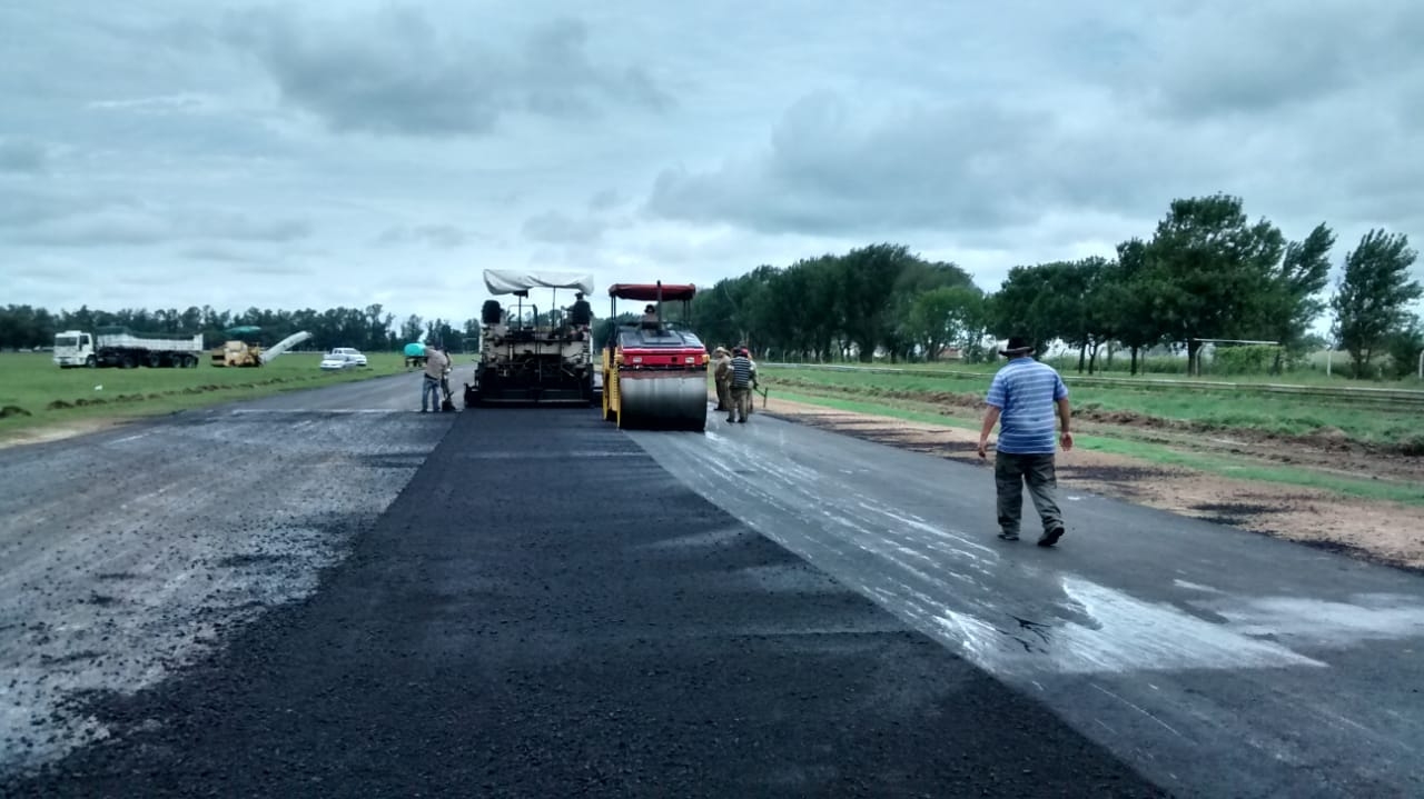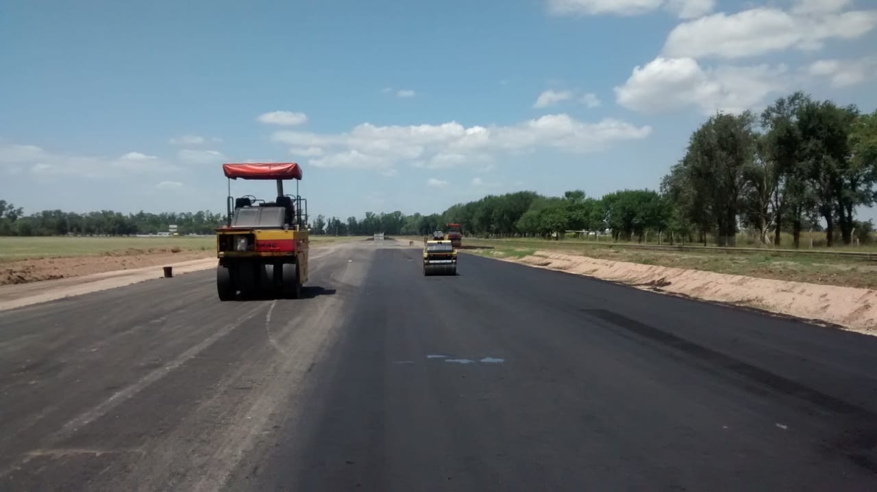 Hoy el 75 % de la superficie de obra está terminada, se sigue trabajando ahora en nivelación de banquinas y ya se están extendiendo las vías de escape.
