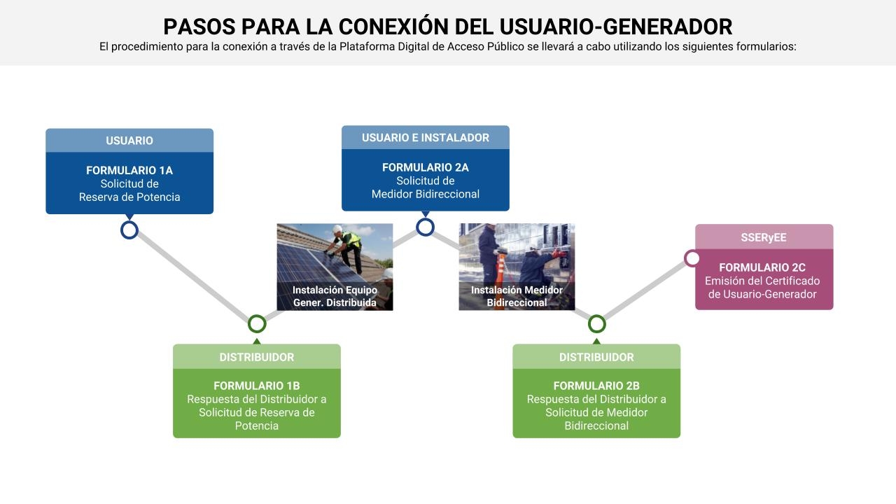 En la página web https://www.argentina.gob.ar/energia/que-es- la-generacion-distribuida/conexion-de-usuario-generador, se explica el proceso para la autorización de conexiones de Equipos de Generación Distribuida y su instrumentación mediante la Plataforma Digital de Acceso Público.