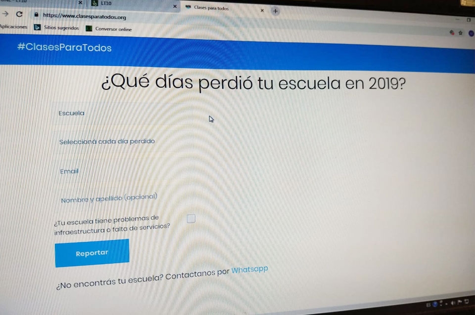 "En esa plataforma, cualquier persona puede ingresar, buscar su escuela, reportar días perdidos en un almanaque y automáticamente se carga en un mapa en línea de acceso público donde se pueden ver escuelas reportadas en todo el país", dijo.