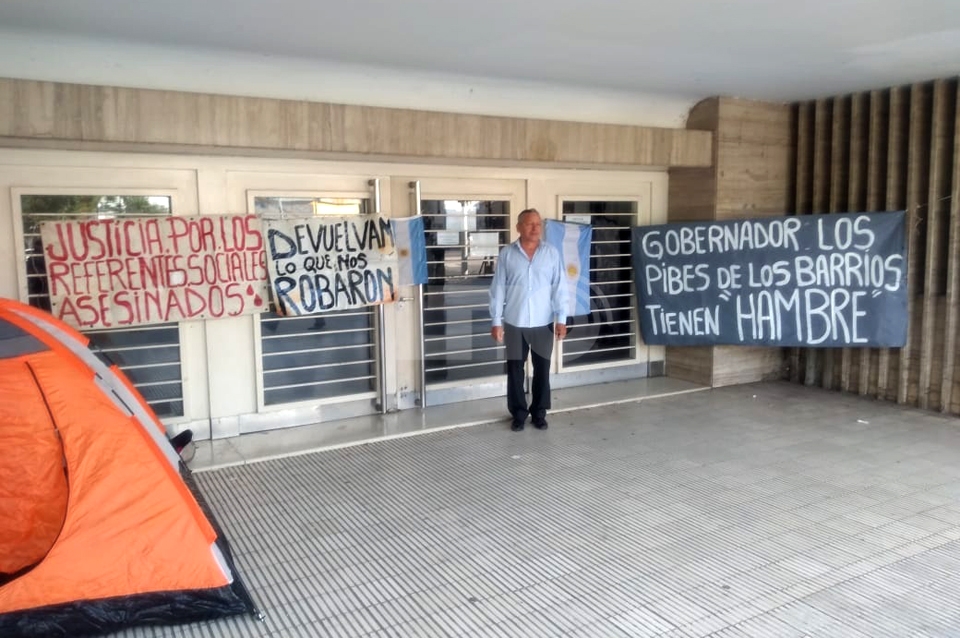 Se trata de pescadores que reclaman ser incluidos en la declaración de Emergencia Hídrica y que les entreguen el dinero del Fondo de Reconversión Pesquera. Además afirmaron que permanecerán en ese lugar hasta ser atendidos por la ministra Alicia Ciciliani. Los trabajadores que reclaman en el lugar se encuentran atados a la puerta principal y otro en una puerta secundaria donde está el estacionamiento de la sede sobre calle Urquiza.