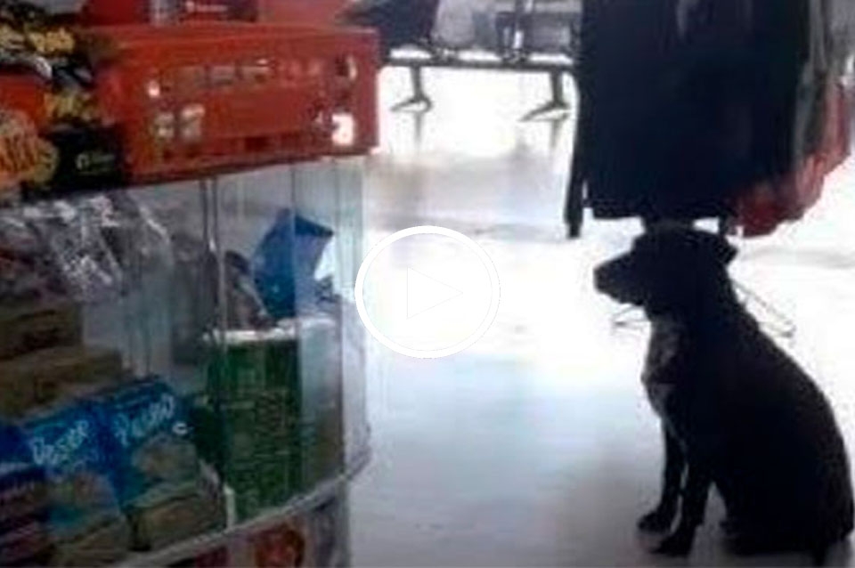 En la filmación se puede cómo el perro se para frente a un quiosquero y espera que el mismo le acerque una caja.