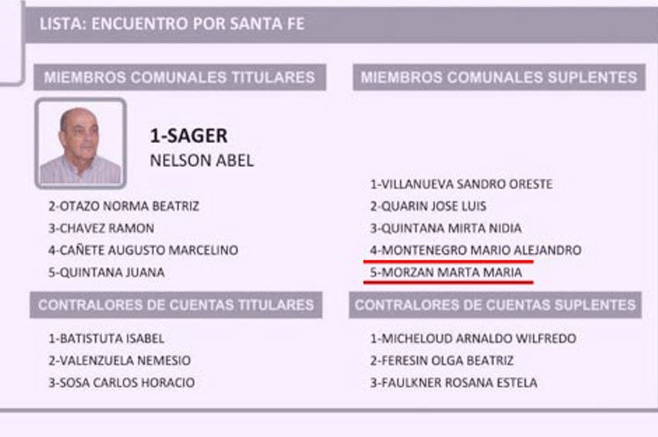 María Marta Morzán es el nombre de la mujer mencionada en el quinto lugar de la lista suplente de aspirante a integrar la comisión comunal por Encuentro por Santa Fe, la variante dentro del justicialismo que lleva a María Eugenia Bielsa como precandidata a gobernadora.