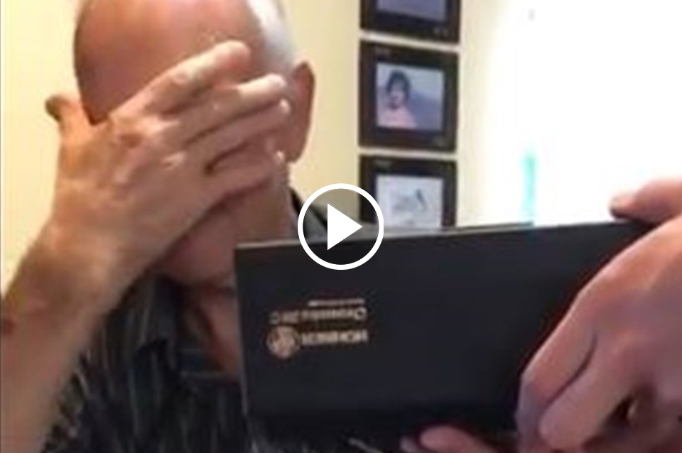 Así reaccionó el hombre, emocionado, al recibir la caja: