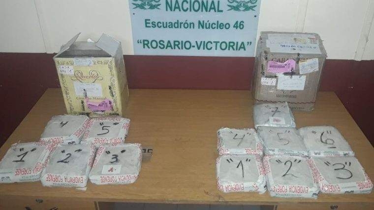 Gendarmería secuestró el martes 10 kilos de marihuana en la autopista Rosario-Santa Fe, a la altura del peaje de General Lagos. Los envoltorios con el estupefaciente estaban adentro de dos cajas que eran transportadas por un vehículo de Correo Argentino. No hay detenidos.