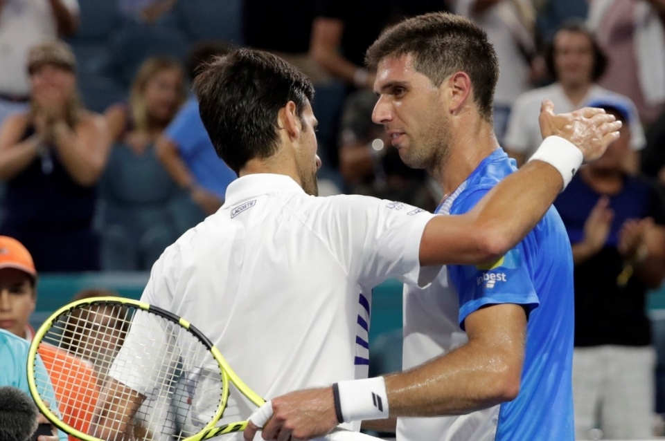 El argentino Federico Delbonis batalló hasta llevar a un tercer set al serbio Novak Djokovic, primer favorito del torneo, frente a quien finalmente cayó en el partido que disputaron por el pase a los octavos de final del Masters 1000 de Miami.