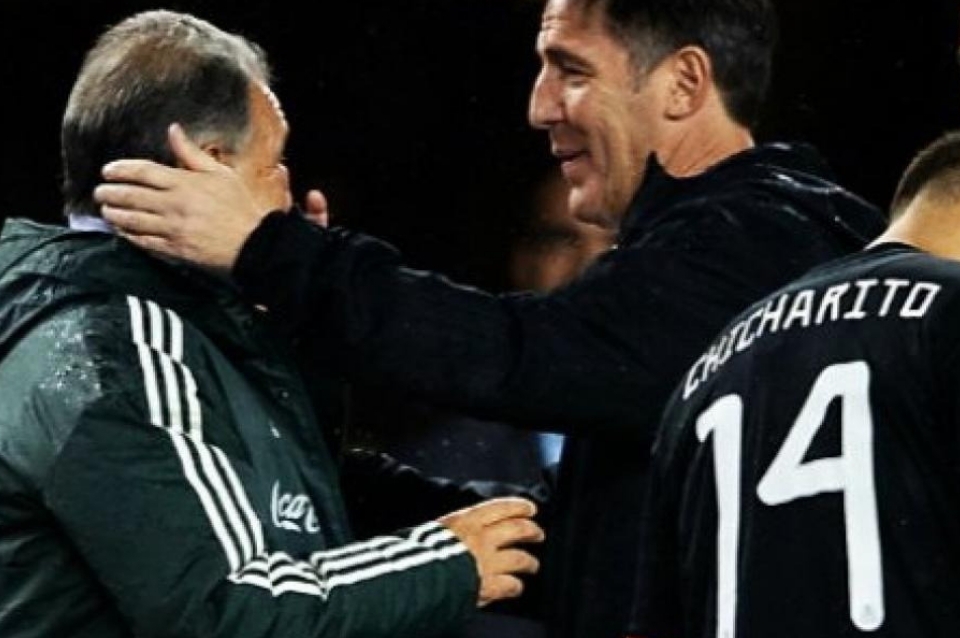 Lo curioso ocurrió en una jugada en la que la pelota salió del campo, Eduardo Berizzo, DT de Paraguay, quiso pasársela a alguien (no está claro a quién) y su zurdazo fue directo a la cara de Gerardo Martino, entrenador de México.