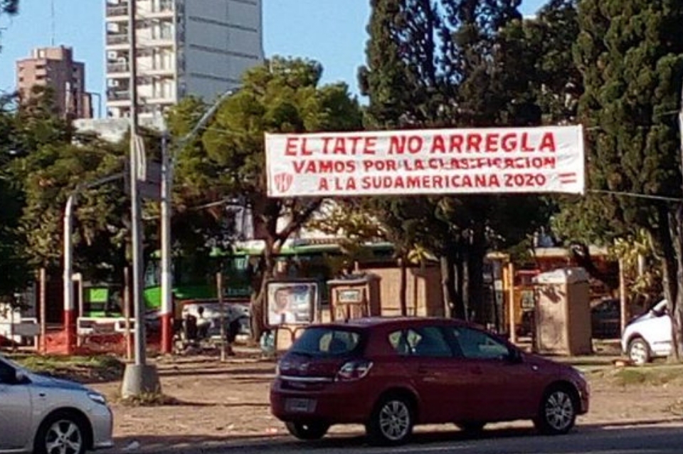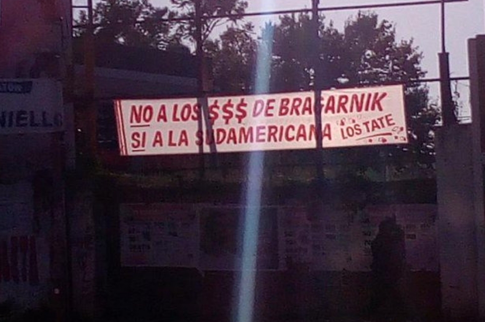 Uno de ellos manifiesta lo siguiente: "No a los $$$ de Bragarnik. Sí a la Sudamericana". En tanto que el restante, indica: "El Tate no arregla. Vamos por la clasificación a la Sudamericana 2020".