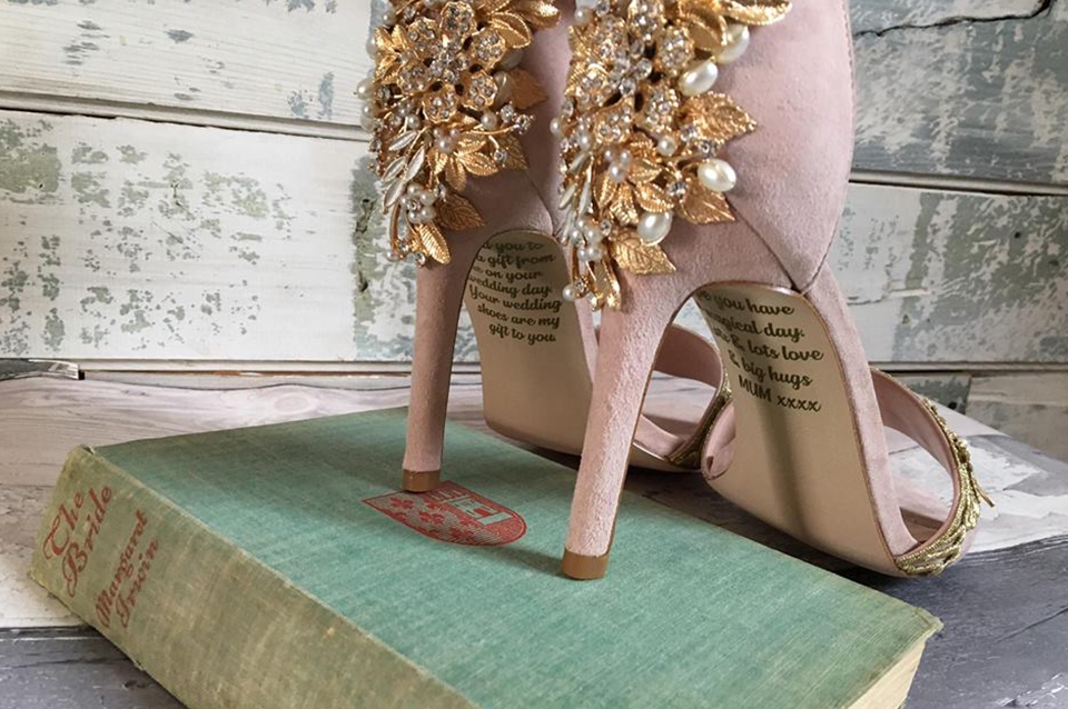 "Quería que tuvieras un regalo de mi parte en el día de tu boda. Tus zapatos de boda son mi regalo para ti. Espero que tengas un día mágico. Mucho mucho amor y abrazos. Mamá xxxx", se lee en la suela de los tacos.