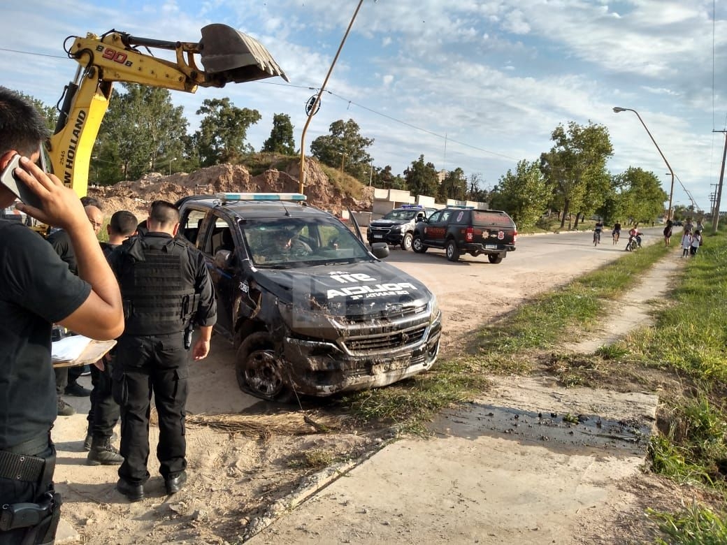 Sin embargo, en la corrida una de las camionetas de la policía derrapó y cayó a una zanja. Los agentes que iban en el vehículo debieron ser trasladados al hospital Cullen con varios traumatismos provocados por el vuelco.
